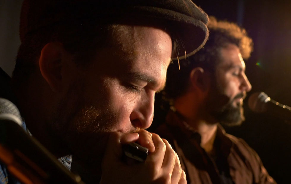 guitare et au chant et Eddy Guiso à l'harmonica.